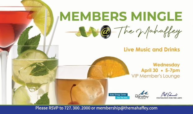 Members Mingle at The Mahaffey Hosted by Bill Edwards Foundation for the Arts Wednesday, April 30 from 5-7pm Open to Members & their guests RSVP to (727) 300-2000 Once a month, Bill Edwards Foundation for the Arts hosts Members Mingle at The Mahaffey! These intimate mingling events feature alternating Happy Hours and Conversations Over […]